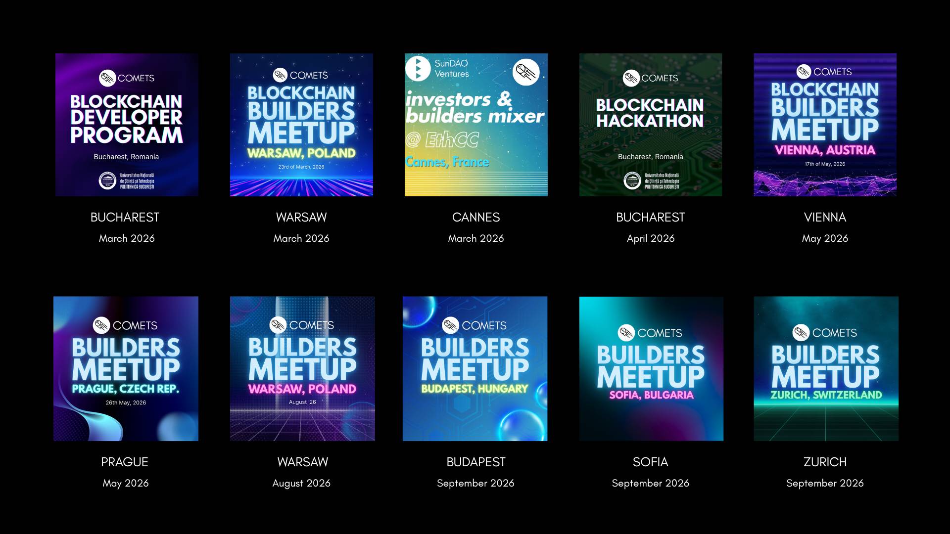 11 Events, 9 Countries: Partner with COMETS in 2026 In 2026, COMETS is bringing together builders, founders, developers, and investors across 11 events in 9 countries, from Warsaw to Zurich. We're looking for partners who want to be in the room where it happens. As a COMETS partner, you get: 20,000+ new potential users and clients exposed to your product across our events 9 markets exposure: Poland, France, Romania, Austria, Czech Republic, Hungary, Bulgaria, Estonia and Switzerland The right...
